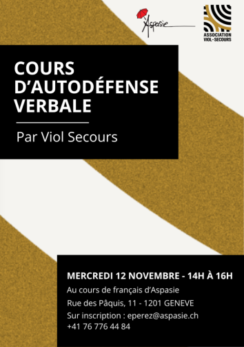 Cet atelier sera animé par l’association Viol Secours dans le cadre d’un cours de français donné à Aspasie.