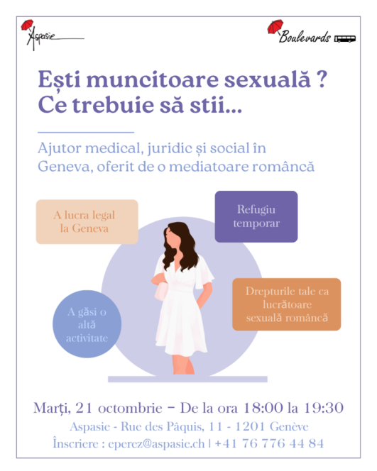 🇷🇴 Pentru lucrătorii și lucrătoarele sexuale din România: ne vedem pe 21 octombrie la Aspasie pentru a discuta despre drepturile voastre cu o mediatoare vorbitoare de limba română.